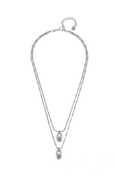 Double Strand Crystal Necklace In Metallic