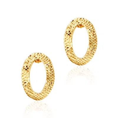 Women's Bianca Transmissioni Two Sphere Chain Hammered Gold Earrings