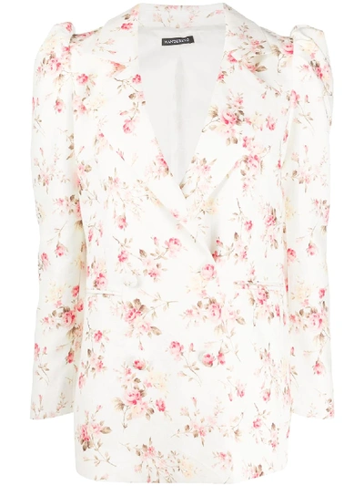 Padded Shoulder Pinstriped Blazer In Neutrals
