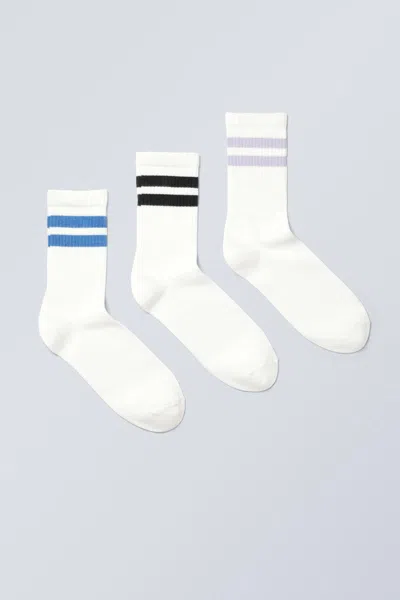 3-pack Striped Sport Socks In White
