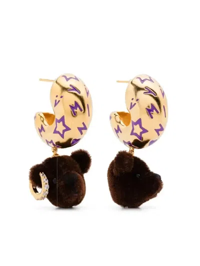 Fox Crystal-embellished Earrings In Brown