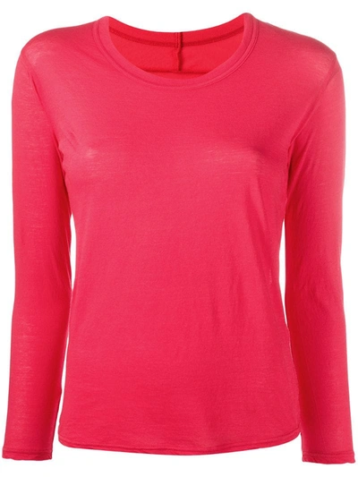 Fine Knit Scalloped Detail Top In Red
