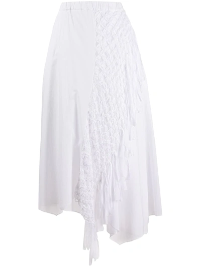 Asymmetric Midi Skirt In White