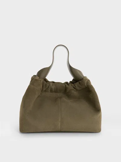 CHARLES & KEITH - Ally Recycled Suede Ruched Slouchy Chain-handle Bag In Green