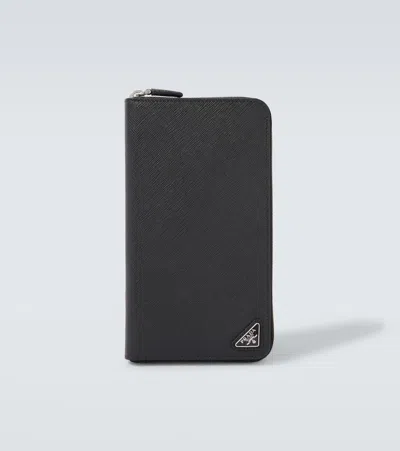 PRADA Logo Saffiano Leather Wallet In Black