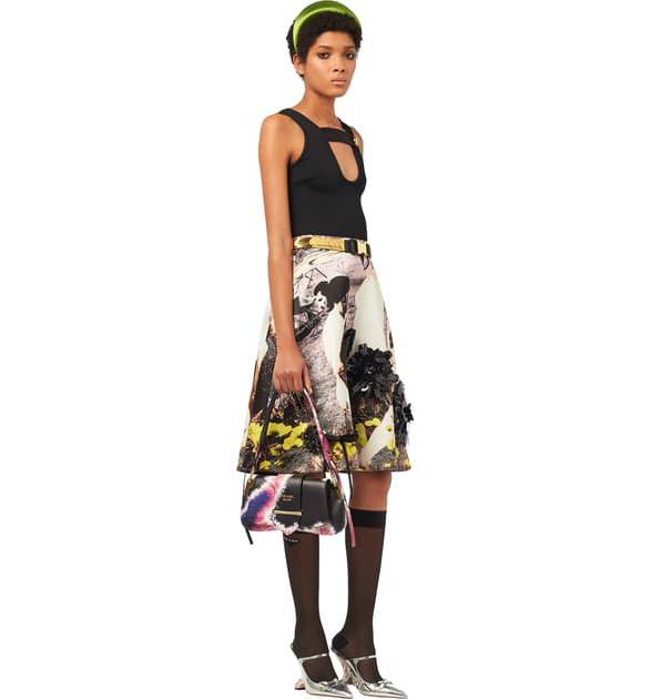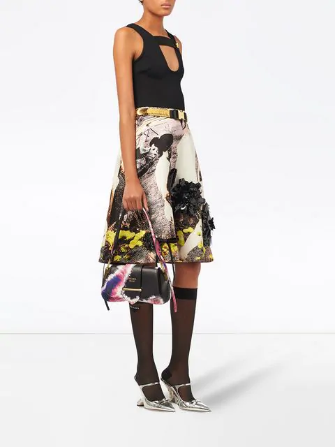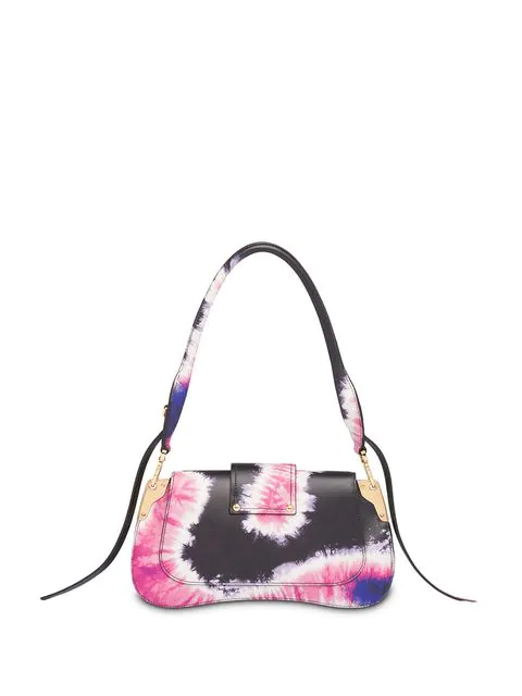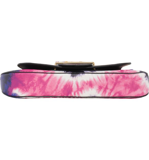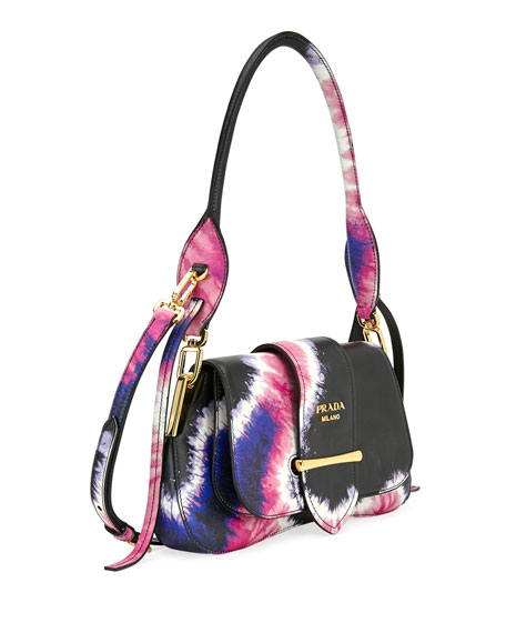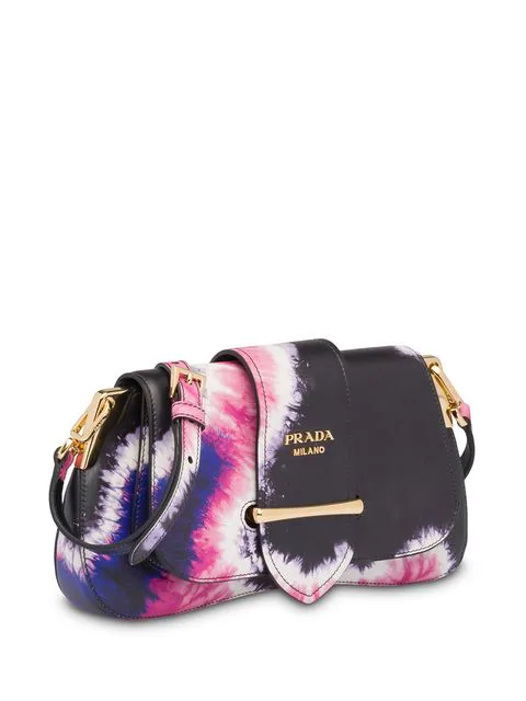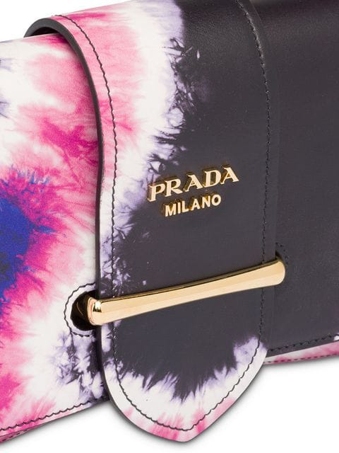 Defining luxury since 1913, Italian fashion house Prada is renowned for their uncompromising quality and timeless design vision. Crafted in Italy and constructed from black and pink nappa leather, this Sidonie tie-dye shoulder bag from Prada features a gold-tone logo plaque, a detachable leather handle, a flap closure with front strap and gold-tone hardware.