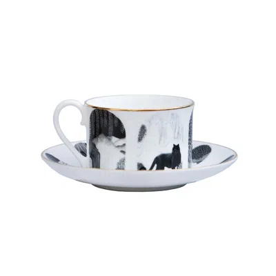 ABI OVERLAND JERSEY Black Peeking Fine Bone China Tea Cup And Saucer