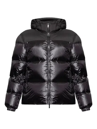 black hooded neck zip fastening elasticated cuffs logo patch