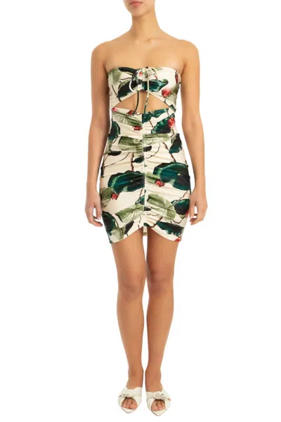 ADRIANA DEGREAS Victoria Regia Frilled Short Dress In Off White-green In Multi