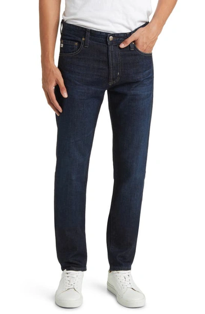 AG's modern slim-fitting jeans are crafted from a natural, dark-blue washed Japanese denim enhanced with a bit of stretch for comfort. Sanded highlights and whiskering illuminate the natural wear points with distinctive vintage character.