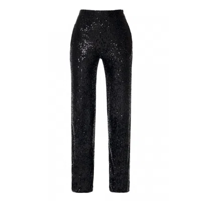 High-waisted trousers with wide legs made of a material embroidered with small sequins. The slightly elastic properties of the material ensure a perfect fit around the waist and hips. With convenient side pockets and zippered on the left side. Wear them with the Luna Obsidian Black sequin jacket to compose the perfect outfit for New Year's Eve or a Carnival party.