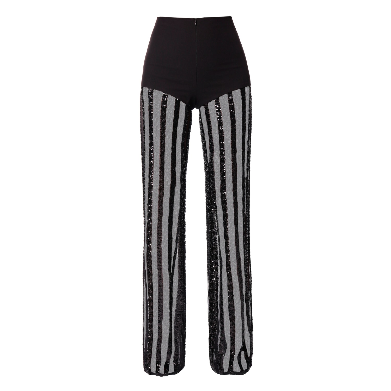 Shimmering sequined and partly transparent evening trousers with a glossy finish. The high-waisted design, coupled with exquisitely elongated legs when worn with high heels, creates a wonderfully lengthened silhouette. Covered zippers at the bottom of the legs provide the option to adjust the slits to your liking.Inner leg length: 90 cm (all sizes)Hips circumference: 96 cm (XS), 100 cm (S), 104 cm (M), 108 cm (L/)Waist circumference: 66 cm (XS), 70 cm (S), 74 cm (M), 78 cm (L)The model is 173 cm and is wearing a size XS