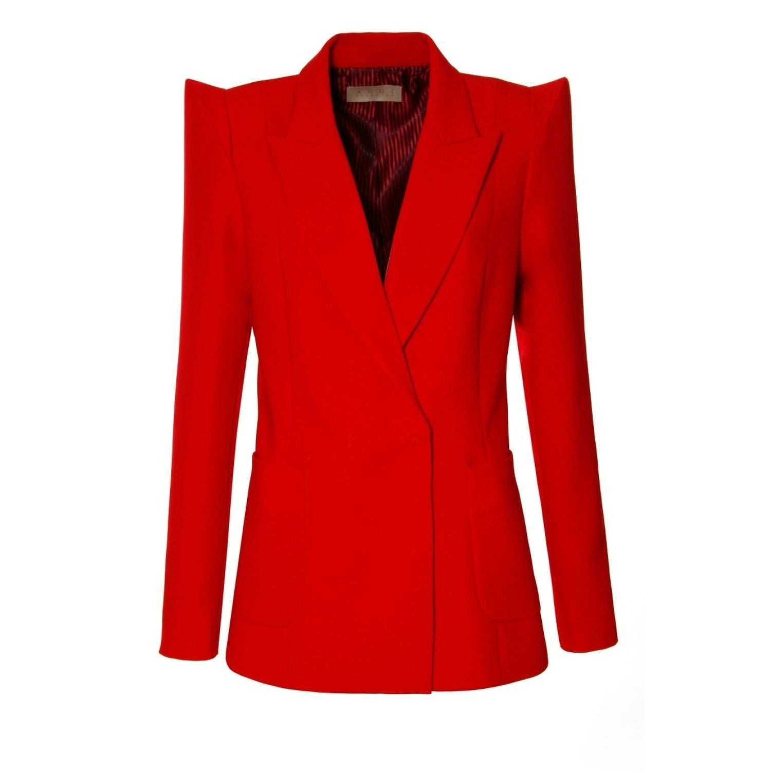 This blazer has a futuristic, geometric shoulder line, which reflects on the flap line. It has hand-embroidered fastenings at the front and cuffs and overlay pockets.The model is 174cm wearing XSMaterial: 68% Viscose, 24% Polyester, 8% SpandexLining: 100% Acetate