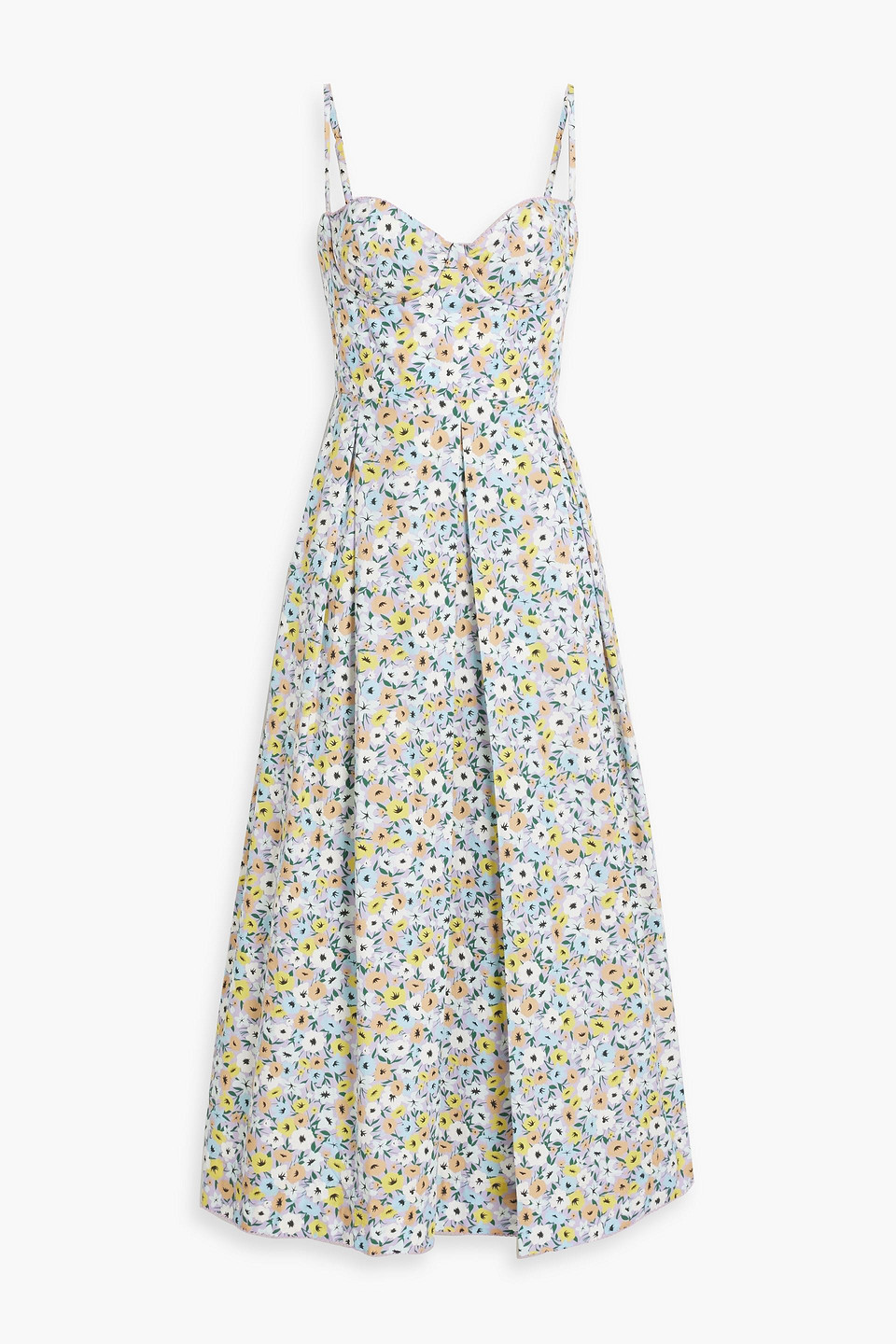 Dress floral-print cotton-poplin embroidered trims pleated underwired cups adjustable straps two side slit pockets button fastenings along back partially lined mid-weight, non-stretchy fabric dry clean imported