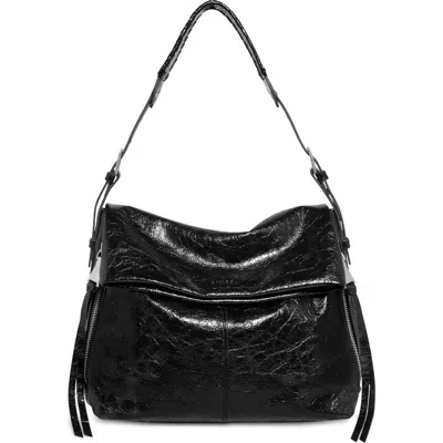 AIMEE Bali Double Entry Leather Hobo In Black
