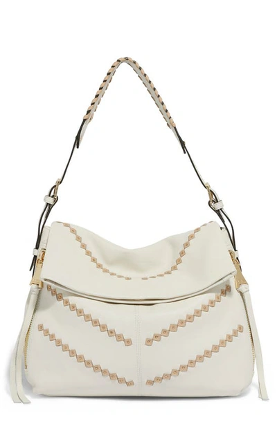 AIMEE KESTENBERG Bali Double Entry Leather Hobo In Vanilla Ice Almond Chevron