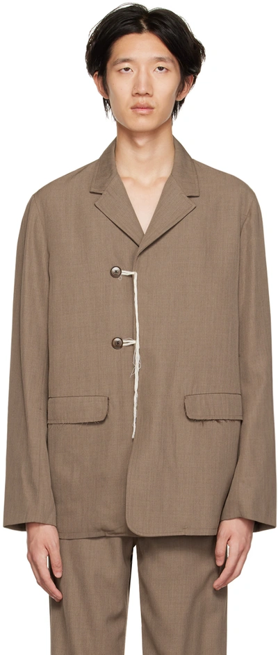 Viscose and wool-blend twill blazer. Frayed edges throughout. · Notched lapel · Double-breasted button closure · Loose thread detailing at front and back · Darts at front · Flap pockets · Welt pockets at interior · Full twill lining Available online exclusively at SSENSE. Supplier color: Brown