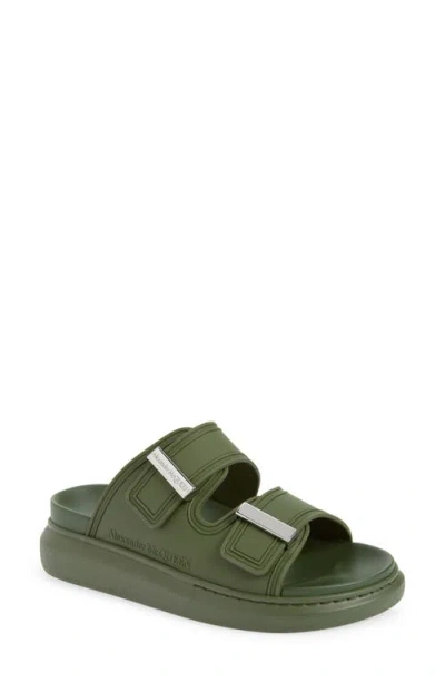 ALEXANDER MCQUEEN Oversized Slide Sandal In Khaki/silver