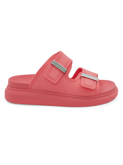ALEXANDER MCQUEEN Rubber Double-strap Slides In Coral Silver