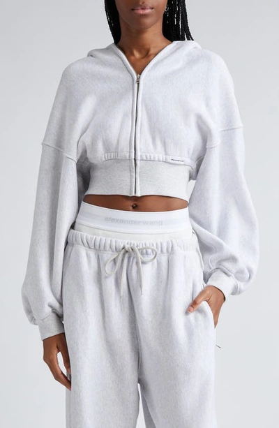 ALEXANDER WANG Crop Front Zip Cotton Hoodie In Light Heather Grey