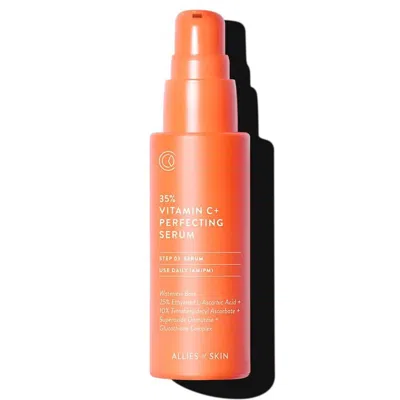 35% vitamin c+ perfecting serum (formerly known as \vitamin c 35% collagen rebuilding serum\) shields skin against pollution, stress and lack. What sets this allies? Its waterless formulation and 35% vitamin c content deliver a more powerful dose. Learn more about this product and allies!. Design house: Allies of Skin. Gender: Unisex. Category: Skin Care. Collection: 35% Vitamin C+ Perfecting Serum. SubType: Balms & Treatments. Beauty group: Face. Size: 1 oz. Barcode: 8885014071381. Allies of Skin 35% Vitamin C+ Perfecting Serum 1 oz Skin Care 8885014071381.