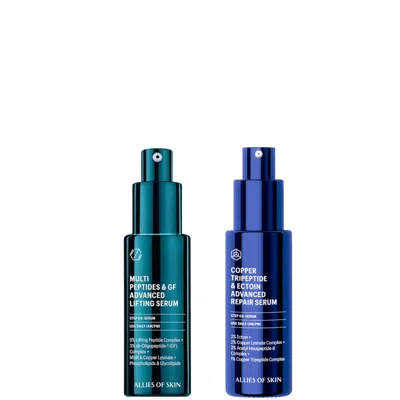 Clinically proven Multi Peptides & GF Advanced Lifting Serum is Allies of Skin's most potent solution to visibly reduce the 9 most stubborn wrinkles and fine lines: Forehead lines, frown lines, crow's feet, tear troughs, bunny lines, marionette lines, nasolabial folds, mental crease lines, and neck wrinkles. Supercharged with a maxed-out 3% Growth Factor Complex and 9% Lifting Peptide Complex, alongside MSM, Copper Lysinate, Phospholipids and Glycolipids. Dermatologically tested for sensitive skin. Enter a new era of skin recovery with Allies of Skin Advanced Repair Serum, a clinically proven, ultra-concentrated repair formula supercharged with 2% Ectoin, 2% Copper Lysinate Complex, 2% Acetyl Hexapeptide-8 Complex, and 1% Copper Tripeptide Complex to strengthen skin, soothe irritation, reduce redness and help reverse multiple signs of aging.