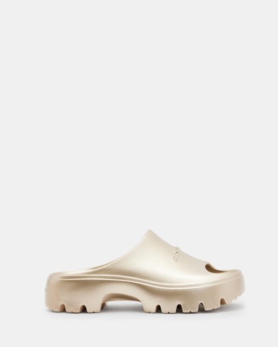 ALLSAINTS Womens Metallic Gold Eclipse Logo-embossed Rubber Sliders