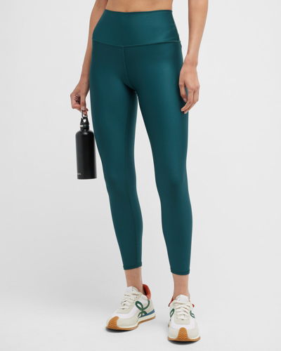 alo 7/8 High Waist Airlift Legging in Dark Green. Size S, XS, L. Nylon blend. Made in Vietnam. Machine wash. Pull-on styling with wide stretch waistband. Stretch fit fabric. Reflective logo detail at leg. ALOR-WP199. W5766R. alo is fueled by good health, good feelings, good fabrics, the greater good. The LA-based, yoga-inspired line features pieces that are functional for everything from a light vinyasa flow to an intense bikram practice. The shorts, leggings, sports bras and tops are designed with movement in mind and employ quality materials that are ideal for wicking away sweat and moving with you. The yoga enthusiast behind the line know what you want when you practice inner peace, wellness and a bra that holds up during bridge pose.