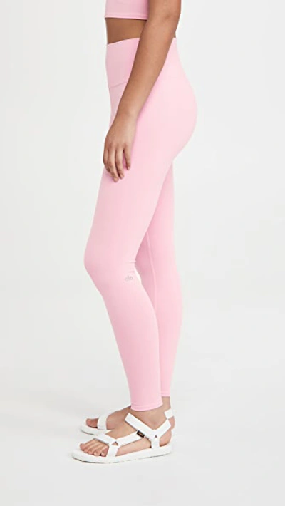 alo 7/8 High-Waist Airlift Legging in Pink. - size XS (also in L, M, S) alo 7/8 High-Waist Airlift Legging in Pink. - size XS (also in L, M, S) 77% polyester 23% elastane. Made in Vietnam. Machine wash. Wide stretch waistband. Alo logo detail at leg. Item not sold as a set. ALOR-WP200. W5766R. alo is fueled by good health, good feelings, good fabrics, the greater good. The LA-based, yoga-inspired line features pieces that are functional for everything from a light vinyasa flow to an intense bikram practice. The shorts, leggings, sports bras and tops are designed with movement in mind and employ quality materials that are ideal for wicking away sweat and moving with you. The yoga enthusiast behind the line know what you want when you practice inner peace, wellness and a bra that holds up during bridge pose.