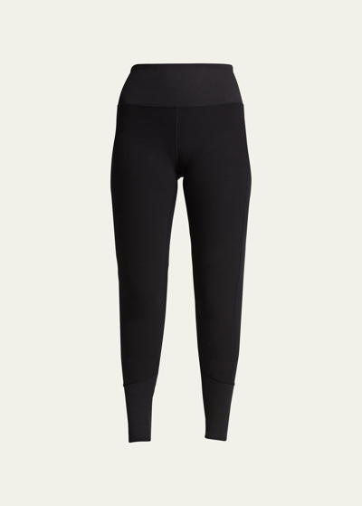 Alo Yoga lounge leggings in soft performance fabric. Ribbed waistband and cuffs. Four-way stretch construction. High rise. Formfitting. Ankle length. Pull-on style. Nylon/spandex. Imported.
