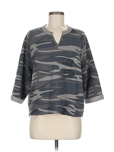 ALTERNATIVE Pullover Sweater, Size: Medium. Item Details: Gray, Camo Pattern, Scoop Neck, 3/4 Sleeve, Women's Tops, Polyester/Cotton/Rayon