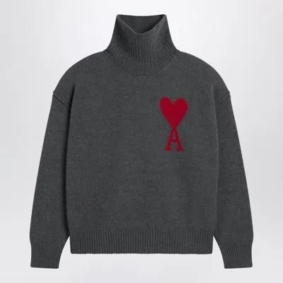 AMI ALEXANDRE MATTIUSSI Ami Paris Ami Paris Black Wool Ami De Coeur Turtleneck In Gray