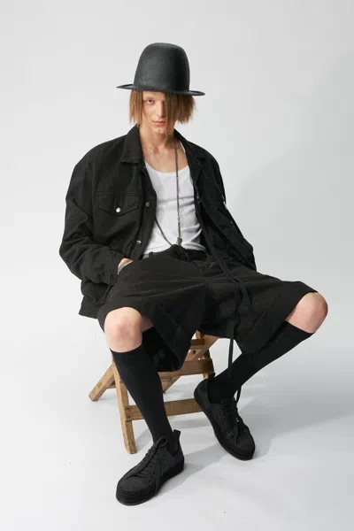 Men's Patrick five pockets jacket- Black Denim- Over Size Fit- Black ribbon detail- button closure- 100% Cotton- Made in Italy Model wears Italian size 48 Height: 188 cm Waist: 73 cm Hips: 86 cm The fit of this item is oversize. If you prefer a narrow fit, consider purchasing this item two sizes down from your usual size.