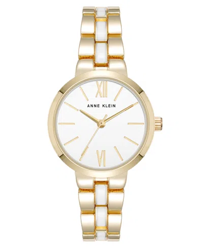 ANNE KLEIN Women's Quartz Modern White Enamel And Gold-tone Alloy Metal Watch, 30mm In White,gold-tone