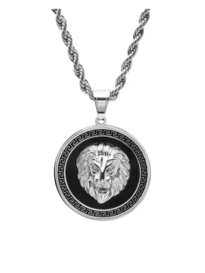 ANTHONY JACOBS Men's 18k Goldplated & Simulated Diamond Lion Greek Key Mount Pendant Necklace In Silver
