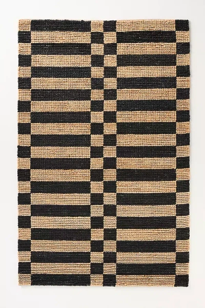 ANTHROPOLOGIE Polina Looped Jute Checkered Rug In Black