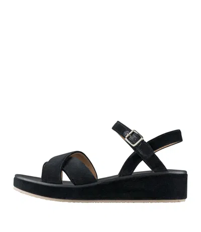 A.P.C. Women's shoes. - Two wide criss-cross front straps. - Ankle strap adjusts with a silvertone metal buckle.- Smooth leather insole. - Wedge heel covered in suede leather.