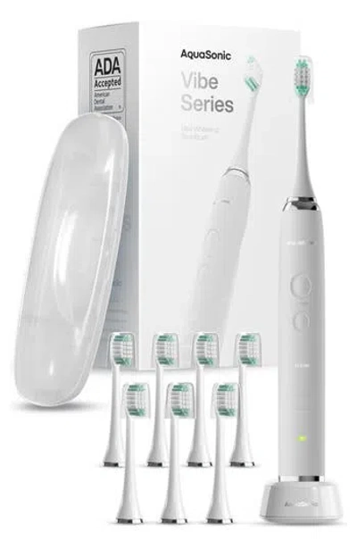 Aquasonic Vibe Series Charcoal Gray Ultrasonic Whitening Toothbrush With 8 Dupont Brush Heads & Trav In Optic White
