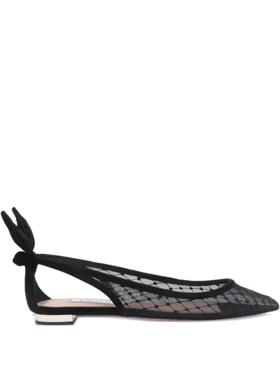 AQUAZZURA Black Mesh And Suede Ballerinas With Bow In Multi