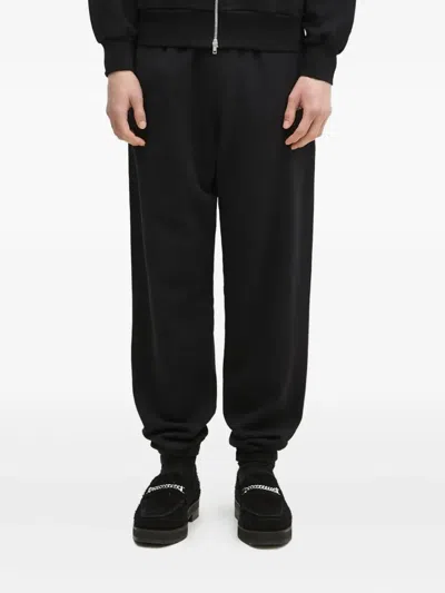black cuffed hems embroidered logo drawstring waistband relaxed fit straight leg