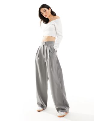 ASOS DESIGN Tailored Wide Leg Pants With Pleat Detail In Gray