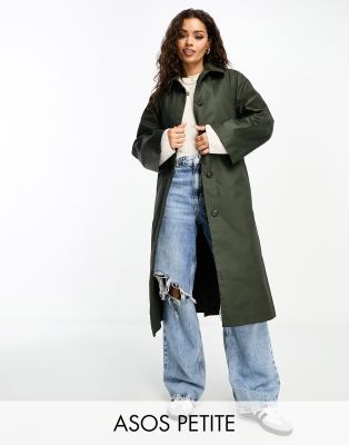 ASOS PETITE Asos Design Petite Wax Trench With Cord Collar In Olive-green