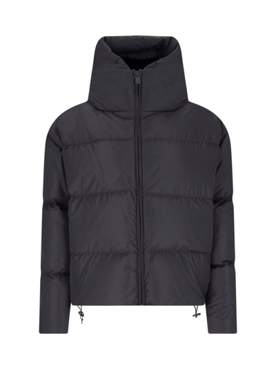 Bacon Cloud down jacket in black quilted nylon with high neck, hood, zip closure, two side pockets, tone-on-tone logo patch, drawstring sleeve on the hem, and straight hem. Composition: 100% Polyamide