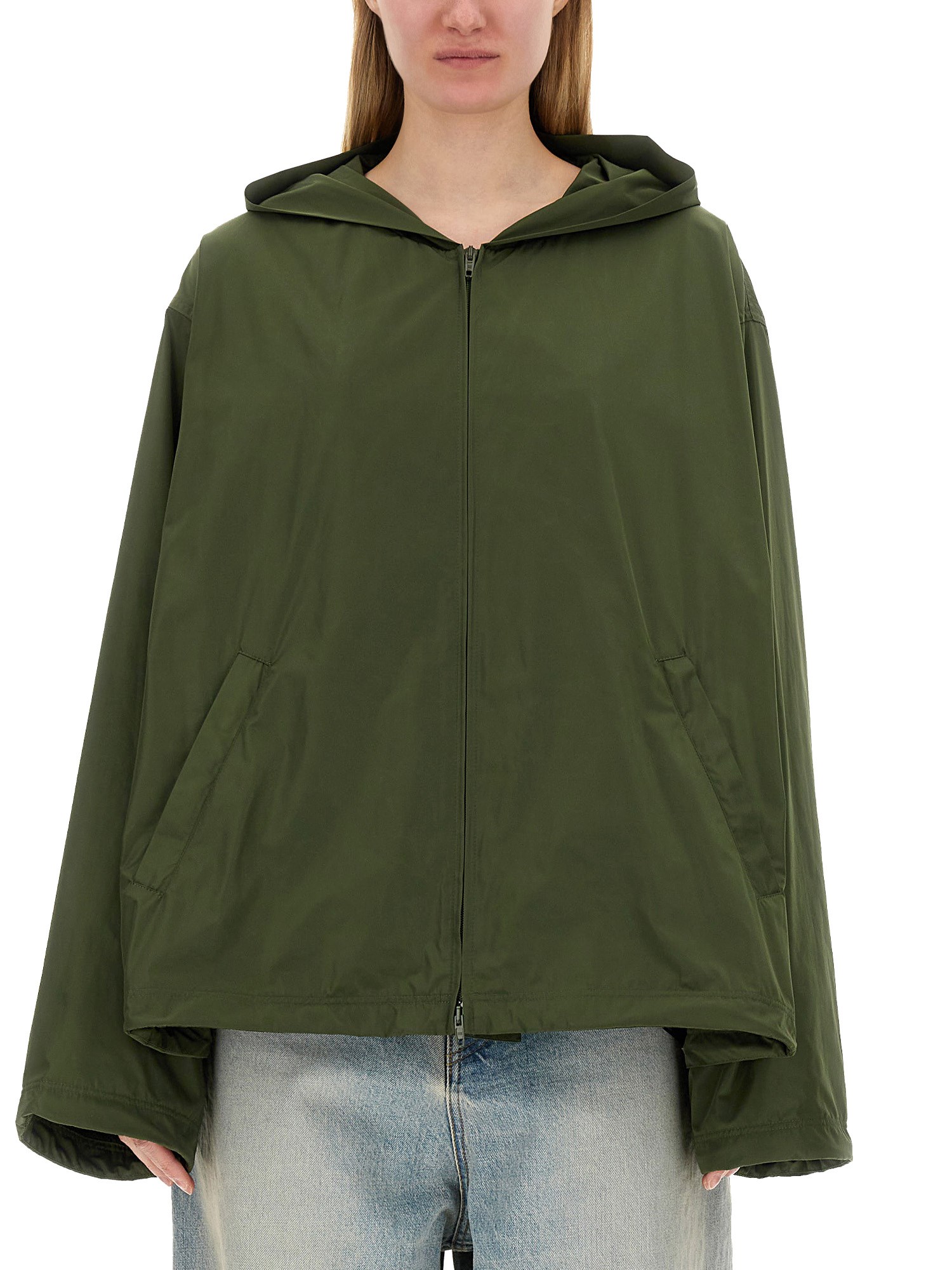Jacket by balenciaga, front zipper closure, hooded design, two side welt pockets with zipper for closure, adjustable drawstring cuffs, contrasting iconic brand monogram on back, regular fit. Composition: 100% % Polyester