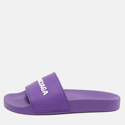 Pre-owned Purple Rubber Logo Pool Slides Size 39