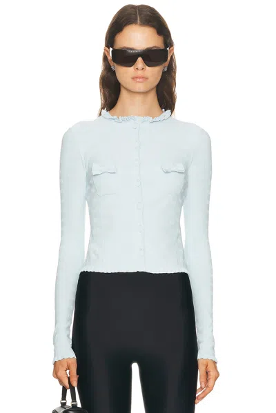 BALENCIAGA Ruffle Trim Bow Cardigan In Blue