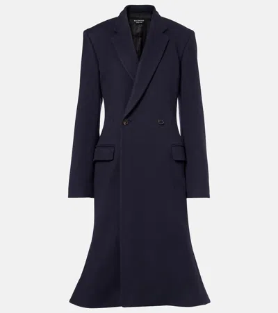 BALENCIAGA Women Godet Midi Double-breasted Wool Coat In Blue