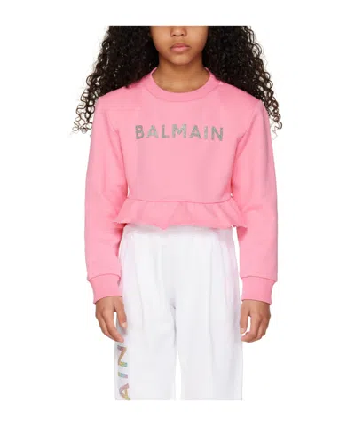 BALMAIN Peplum-hem Cotton Sweater In Pink