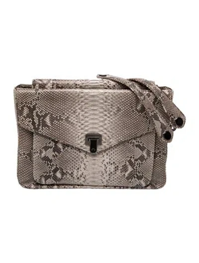 Baraboux Shoulder Bag Grey Python Animal Print Gunmetal Hardware Chain-Link Shoulder Straps Dual Exterior Pockets Canvas Lining Turn-Lock Closure at Front Unfortunately, due to restrictions, this item may not be eligible for shipping in all areas. | Baraboux Python Shoulder Bag in Grey