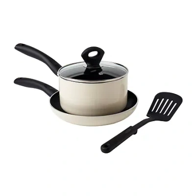 Durable Aluminum Offers quality cooking performance, heating up quickly and evenly, perfect for braising, roasting, frying, and simmering. Compatibility: Designed for use with electric, gas, ceramic, and glass stovetops.# Pieces In Set: 4Included: 1 Slotted Turner(s), 2 2.5 Qt. Saucepan(s) With Lid(s), 1 9.5 Inch Fry Pan(s)Features: Non-Stick, Vented Lid, Ergonomic Handle, Tempered Glass, Heat Resistant Handle, Stackable, Even Heating, Induction SafeCooktop Compatibility: Induction, Gas, Electric, Glass, CeramicManufacturer Warranty: 1 Year LimitedRecommended Utensil Material: Nylon, Wood, SiliconeShape: RoundSteamer Insert Compatibility: 2.5 Qt. SaucepanCare: Hand WashDecor Styles: CasualMaterial: AluminumCountry of Origin: Imported